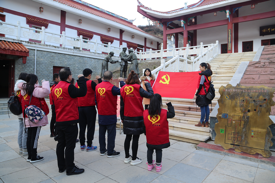 捐赠仪式结束后,四川同心慈善基金会的志愿者们,来到了红军长征两河口会议纪念馆参观学习。为深入贯彻中共十九大精神,在新时代下继续弘扬红军长征精神,在两河口会议纪念馆,党员同志们面向党旗,非党员群众也举起了右手向党旗宣誓。重温入党誓词活动在党员和非党员群众心中产生了强烈的共鸣,激发了热情,进一步增强了党组织的凝聚力和战斗力。激励我们在今后的学习和工作中,要依照入党誓词的要求在思想和行动上与党中央保持高度一致。继续发扬党的优良传统,在新时期发挥党员的先锋模范作用。志愿者中有—位刚入少先队的小朋友,也举起了右手向党旗宣誓,立志做共产主义接班人。不忘初心,牢记使命,做一名“让党放心、让人民满意”的合格党员。