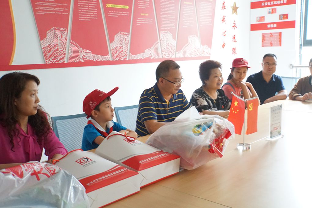 2018年7月11日下午,冒着德阳市首次红色预警的特大暴雨,四川同心慈善基金会理事长罗钢先生、定向捐赠单位四川兴天华建设项目管理有限公司董事长舒泽芬女士、副总经理蒋及斌先生及同心慈善的志愿者们来到了德阳市经开区旌东街办乐安社区,开展了乐安社区贫困学生结对帮扶捐赠活动。参加活动的还有乐安社区党委书记江炳蓉女士、党委副书记倪文春女士和结对帮扶的学生及家长们。