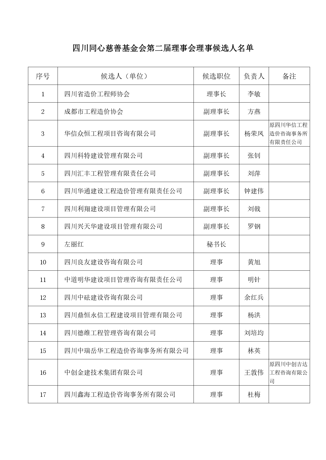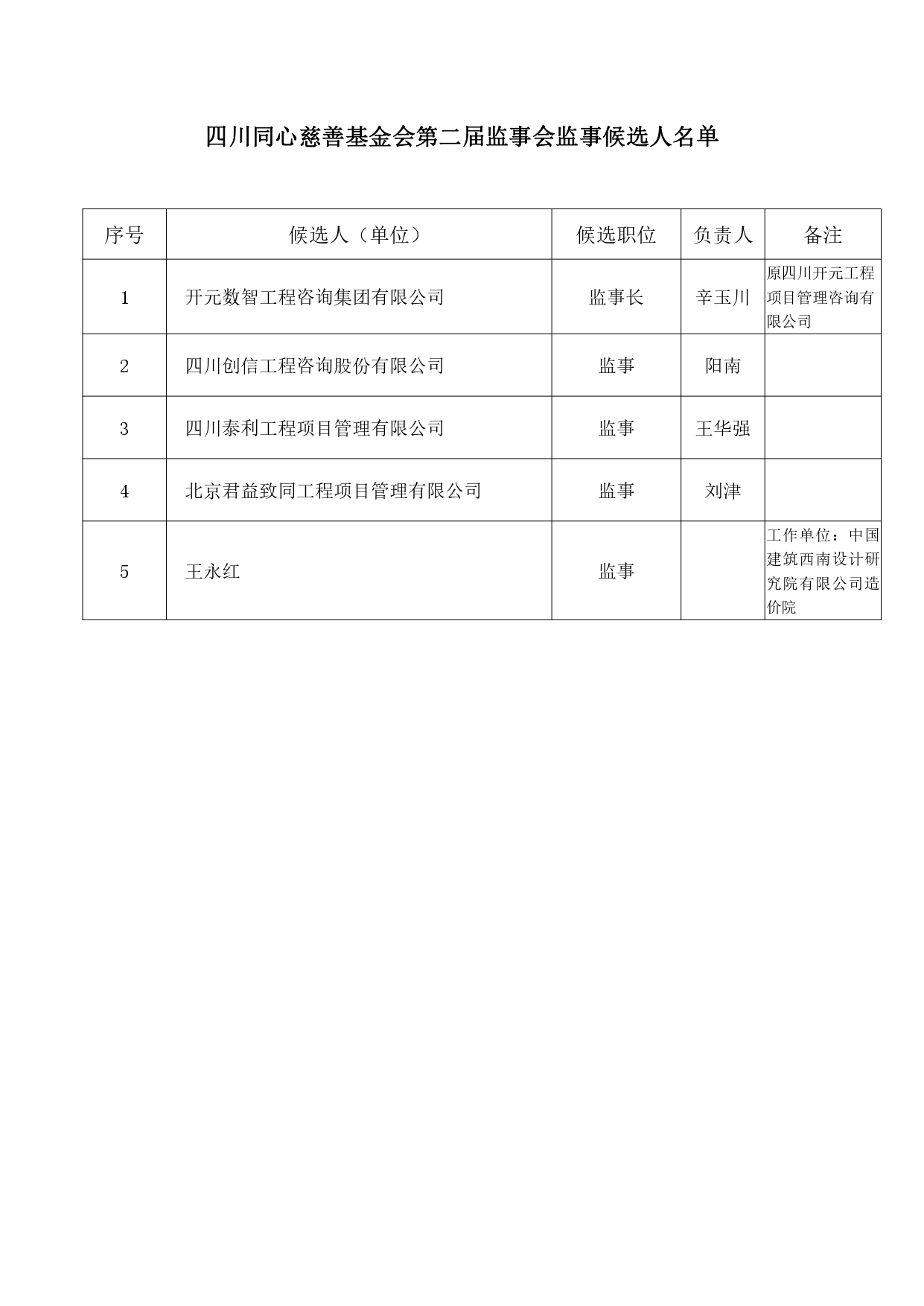 川同心〔2020〕13号 关于第二届理事会、监事会拟任理事、监事候选人公示的通知