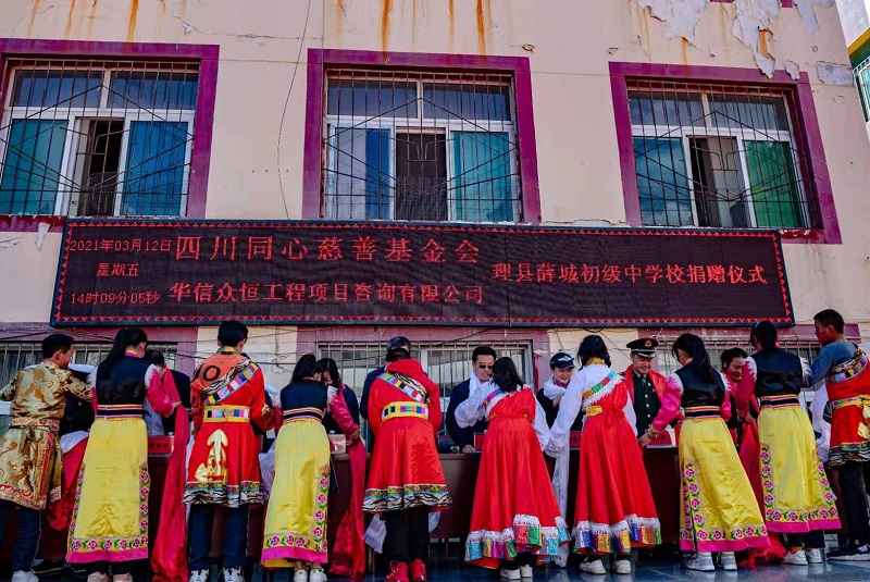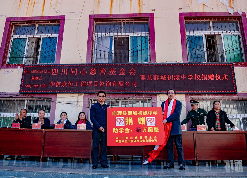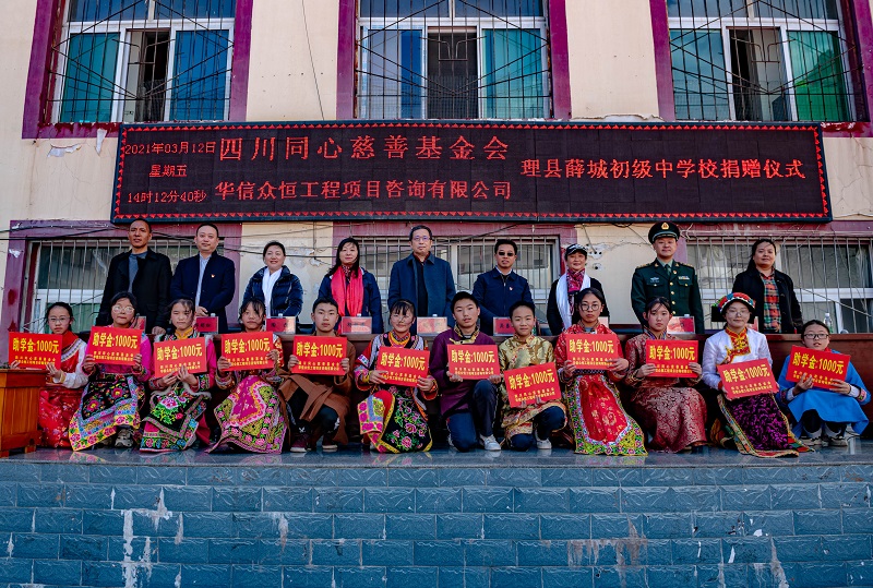 华信众恒工程项目咨询有限公司通过四川同心慈善基金会向学校定向捐赠现金10万元,以资助12位品学兼优的学生,进一步改善学校办学条件,力争为师生们营造更好的学习环境和氛围。